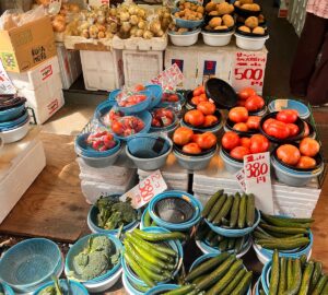 野菜の色、店先に並ぶ魚、行き交う人たちの声。そういうものが全部混ざって、すごくいい空気になっていた。