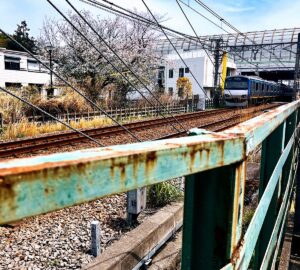 この道がまた良かった。少しレトロな雰囲気が残っていて、線路沿いを歩きながら桜や電車を眺められる。歩いているだけなのに、どこか懐かしい気持ちになる景色が続いていた。