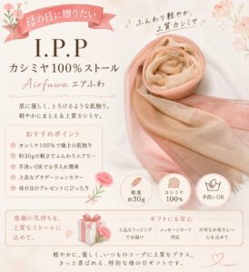 [I.P.P] ストール カシミヤ100% (手洗いOK)