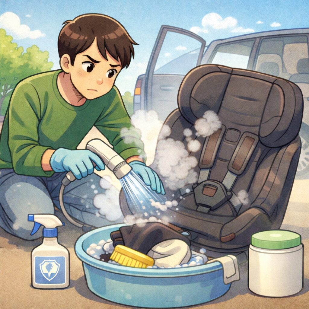 この記事では、僕が実際にやったチャイルドシートの洗い方と、やりがちな失敗、臭いを消すコツ、乾かし方までまとめるよ。