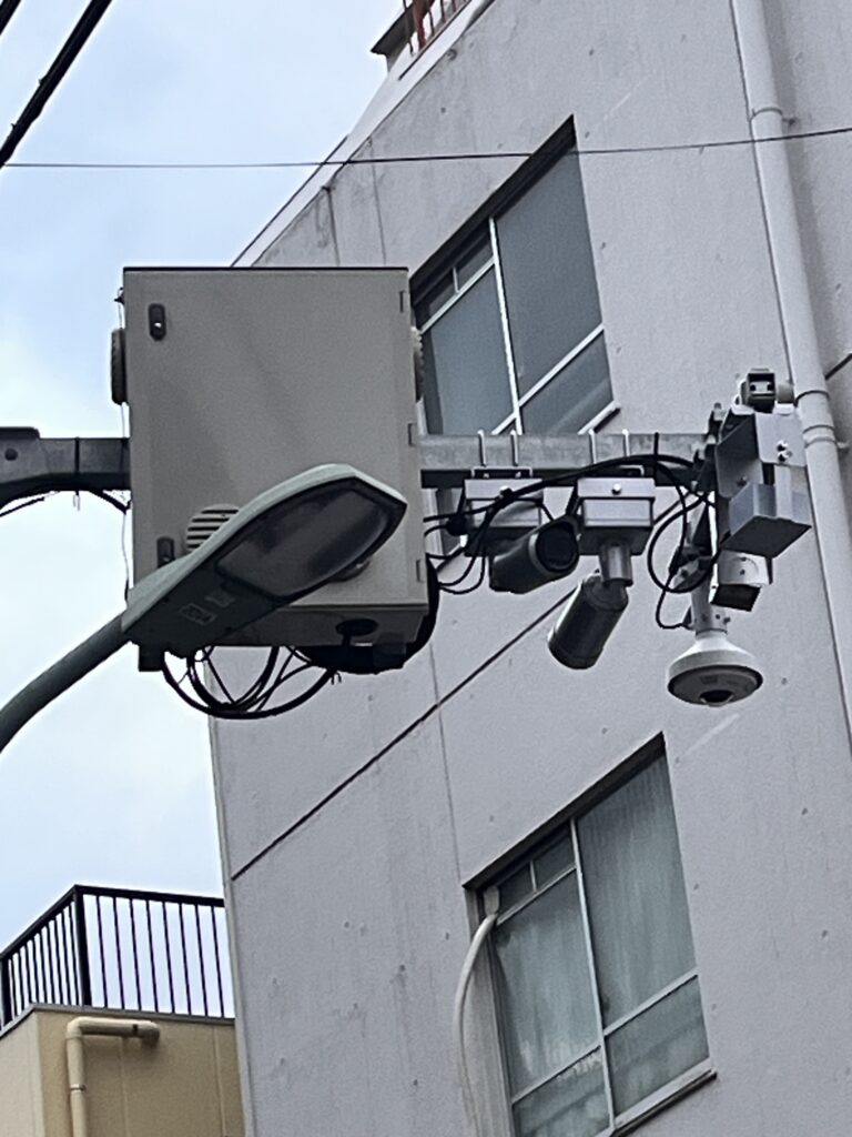 ある日、交差点の手前でふと見上げたら、電柱の上に複数のカメラがついていた。