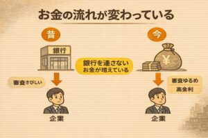 でも今は、投資ファンドや機関投資家が、銀行を通さずに直接企業へお金を貸す流れが大きくなっている。