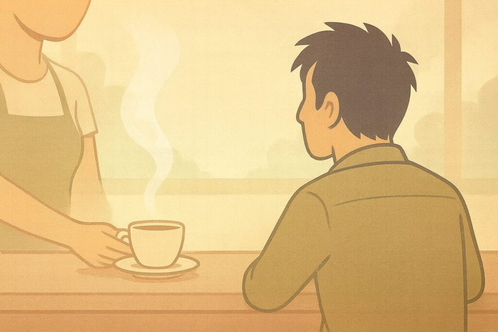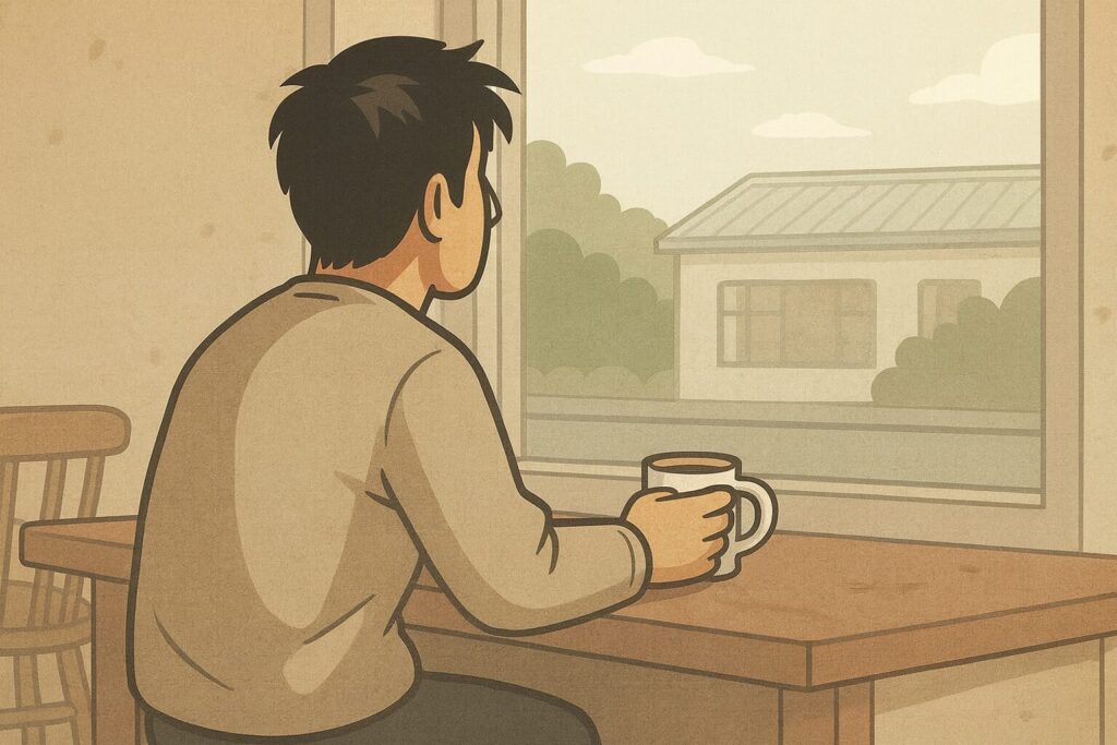 ある朝、僕は小さなカフェにいた。海辺のベンチで沈黙に救われた日(海外編6話)のあとも、僕の中にはまだ、うまく説明できない重さが残っていた。体調が悪いわけじゃない。嫌な出来事があったわけでもない。ただ、胸の奥が鈍く、重たい。そういう日がある。