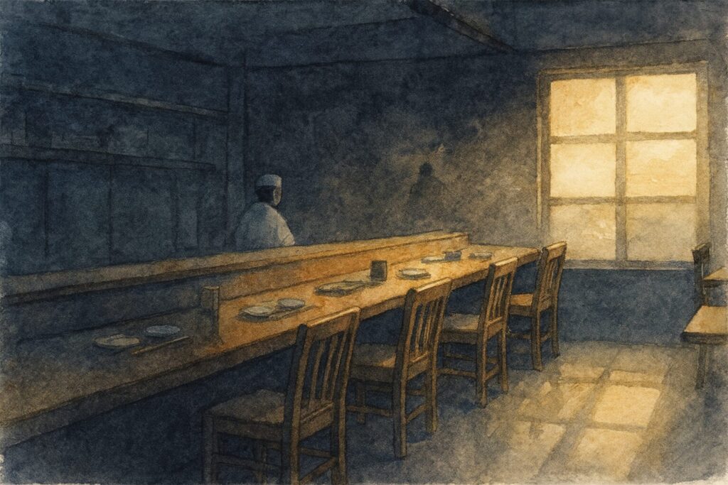 まだ、椅子に人の温度も、会話の残り香もない。
